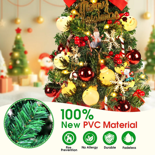 24Inch Tabletop Christmas Tree with Led Hanging Lights Desktop Mini Xmas Tree Decoration, Red