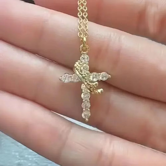 2024 Hot Sale AAAA Cubic Zircon Plated 14K Gold 50Cm Length Men Women Cross Necklace Crown Rotatable Hang Jewelry Drop Shipping